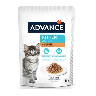 Eğer yavru kediniz 1 yaşından küçükse fiziksel ve davranışsal açıdan en stresli dönemden geçiyor demektir ve bu tam da onun güçlü ve sağlıklı büyümesine yardımcı olacak bir mamaya ihtiyaç duyduğu andır.ADVANCE Wet Kitten, yavru kedilerin sağlıklı ve uyumlu bir büyüme için beslenme ihtiyaçlarını karşılamak üzere özel olarak formüle edilmiş formüle sahip tam ve dengeli bir mamadır.ADVANCE Wet, kedinize lezzetli lokmaları lezzetli bir sosla sunabilmeniz için yüksek kaliteli malzemelerle buharda pişirilir.Daha çeşitli tat ve dokular elde etmek için kuru mamayı ıslak mama poşetleriyle birleştirin veya yavru kedinize yalnızca %100 tam ve dengeli bir mama olan ıslak mama sunabilirsiniz. Yavru kedilerin beslenme ihtiyaçlarını karşılamak üzere özel olarak üretilmiş tam ve dengeli yaş mama. ADVANCE Kitten, 2 ila 12 ay arasındaki yavru kediler veya hamile veya emziren kediler için önerilir.